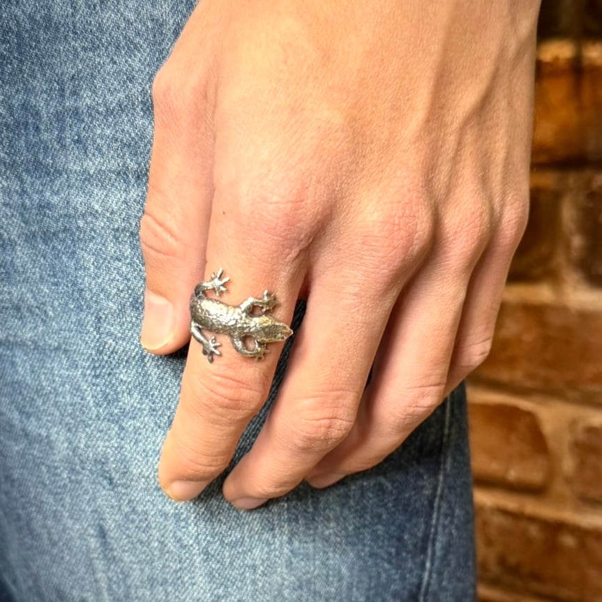 アフリカ中部から西部の湿潤地域に生息するニシアフリカトカゲモドキがモチーフのリングです。