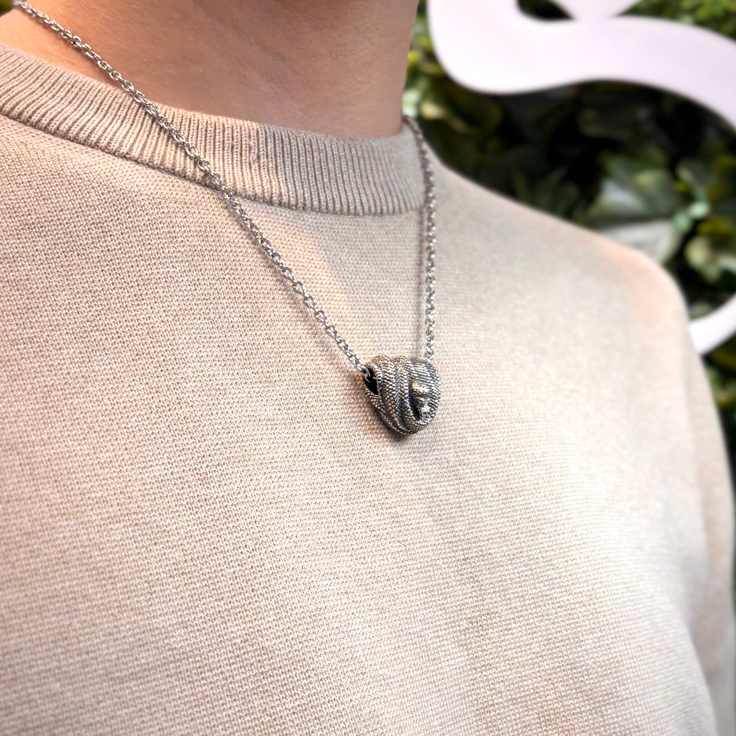 木の上でとぐろを巻く独特な姿が印象的な蛇で、その特徴そのままをペンダントトップに。