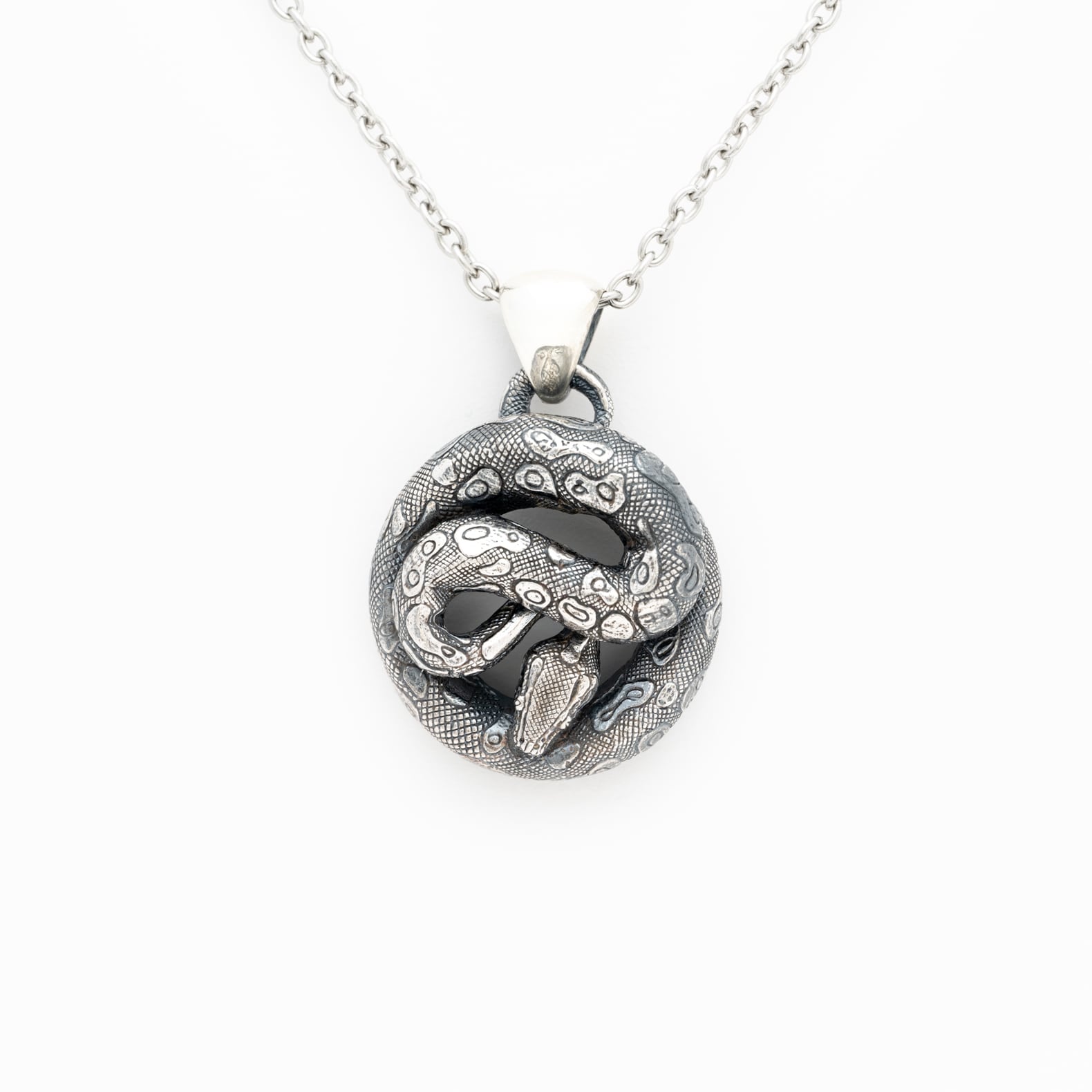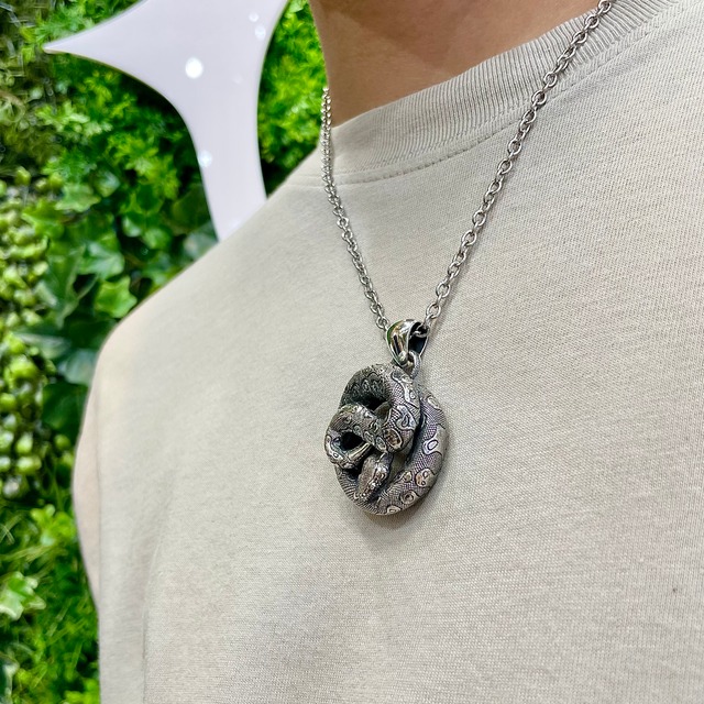 アフリカに生息するニシキヘビ。模様や体の色のバリエーションが豊富で穏やかな性格の個体が多いので、ペットとしてとても人気。ずっしりとした重く、迫力あるペンダント。