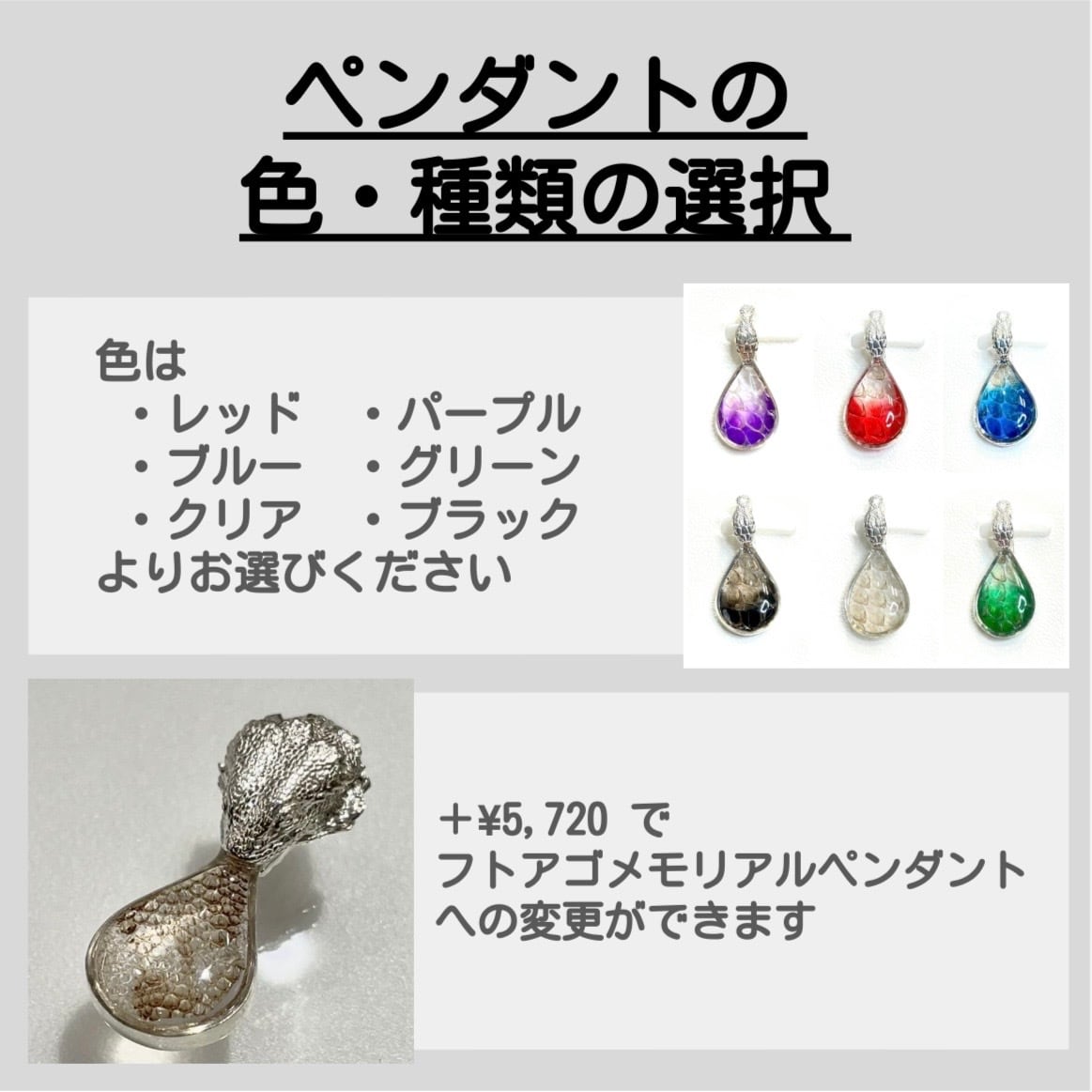 +¥3,080でフトアゴメモリアルペンダントをご選択いただけます。
