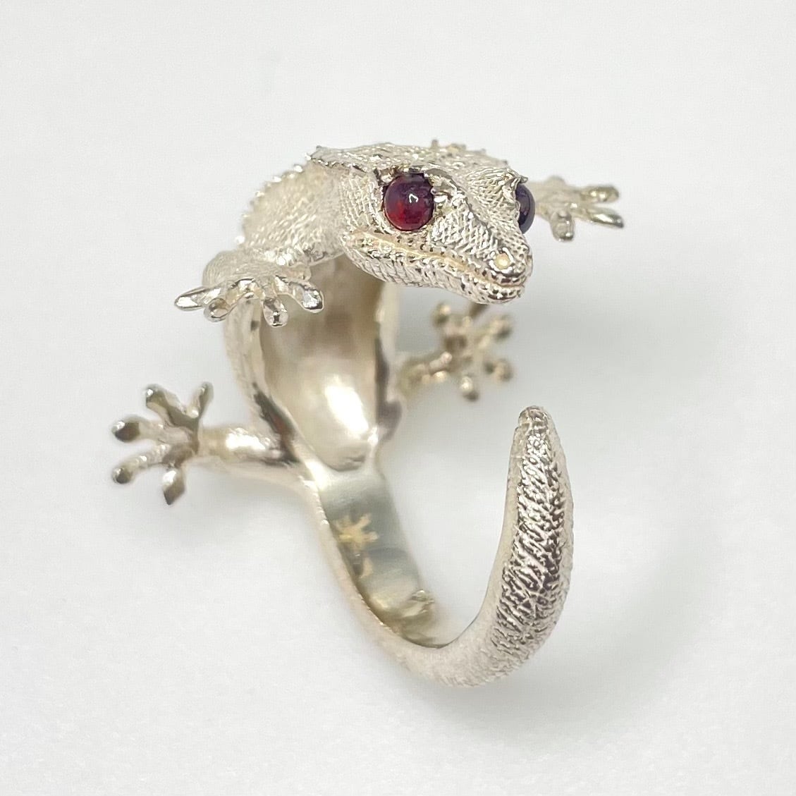 白仕上げクレステッドゲッコーリングの目がガーネットの特別仕様。