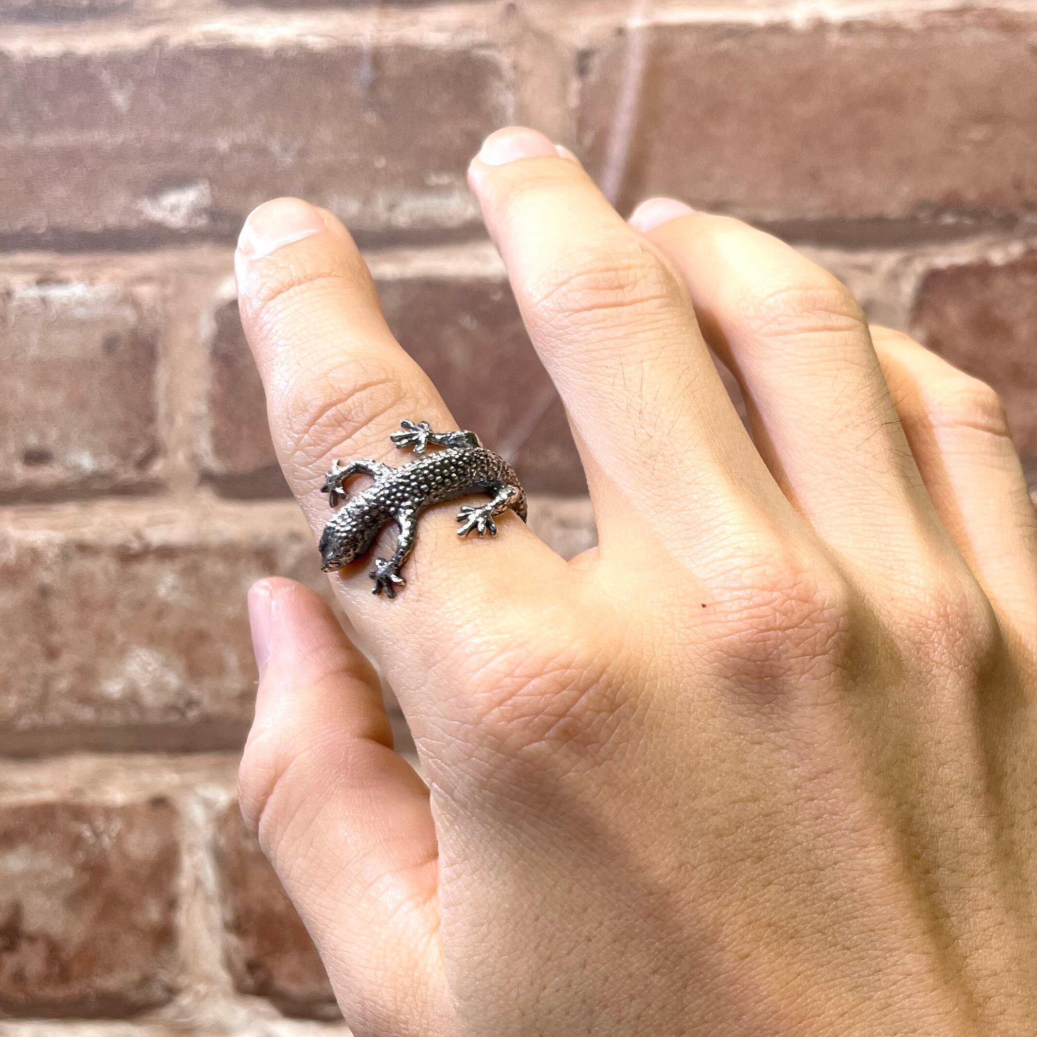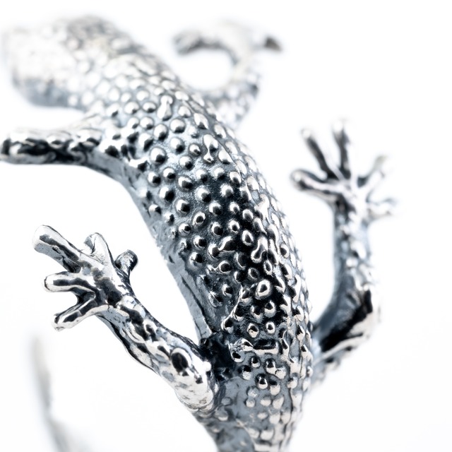 レオパードゲッコーリング https://coldis.theshop.jp/items/44228294 より小さめに制作しているので手の小さな方にも身につけやすいサイズ。